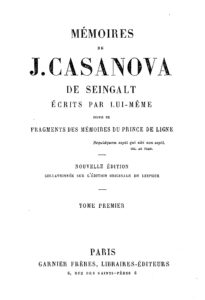«A cinquantatré anni Casanova, da tempo non più spinto a vagare per il mondo dal giovanile piacere dell’avventura, ma dall’inquietudine dell’avanzante vecchiaia, fu preso da una così intensa nostalgia per la sua città natale, Venezia, che cominciò a girarle intorno simile a un uccello che vien giù a morire calando da libere altezze in sempre più strette volute. Negli ultimi dieci anni di esilio aveva già rivolto ripetute suppliche al Consiglio dei Dieci».