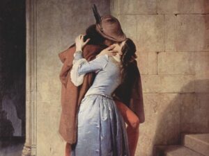 In scultura, il bacio più conosciuto è quello di Canova con Amore e Psiche, del 1787/93, ma famoso è anche quello di Auguste Rodin dedicato a Paolo e Francesca che curiosamente ha provocato scandalo in ogni museo sia stato esposto, dal 1888 al 2017.