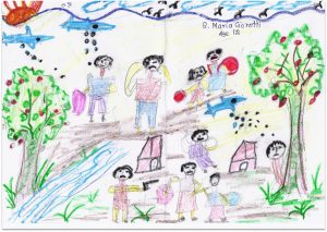 Ma perché? Se lo chiedono i bambini italiani, anche loro come i coetanei che le guerre non le hanno viste in televisione ma vissute sulla propria pelle, si chiedono il perché di tanta sofferenza, di tanto odio. Ma perché? La risposta è perché non c’è amore. Solo l’amore come espresso nell’ultima enciclica Dilexit nos di Papa Francesco scritta nel suo dodicesimo anno di pontificato e pubblicata nell’ottobre scorso, porterà la pace e i bambini questo lo sanno perché nel loro vocabolario grafico non ci sono solo scene di guerra, ma mescolati tra le rovine ammassate, compaiono un sole, un fiore e tanti cuoricini.