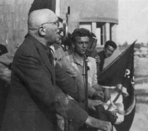 L’avvocato Guido Miglioli (1879-1954), durante un comizio. Fu l’organizzatore dei sindacati degli agricoltori cattolici, le Leghe Bianche